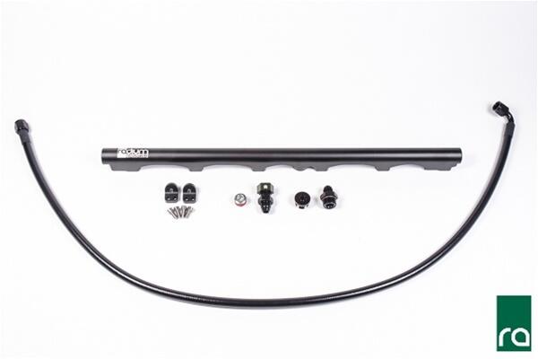 The aluminum Radium Engineering fuel rail is machined and anodized for a compatibility with all fuel types including E85. Manufactured with a large internal bore, the fuel rail can support all necessary engine power requirements. It is compatible with OEM and aftermarket direct fitment fuel injectors. It features a large 0.65" internal bore with -8AN ORB (3/4-16 O-ring) threaded ports at each end and 3/8" NPT female center port to accept a variety of adapter fittings for custom high flow fuel system builds. It is compatible with all fuel types including popular alcohol mixtures such as E85. The fuel rail is a direct bolt-on for all BMW's equipped with the S54 engine, including: